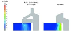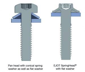 EJOT SpringHead® with unlosable flat washer vs. pan head