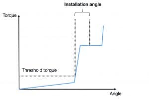 Schematic torque-angle curve and possible fastening strategy